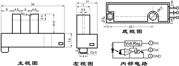 ● 光縫寬度:0.5mm;光軸中心:2.3mm。