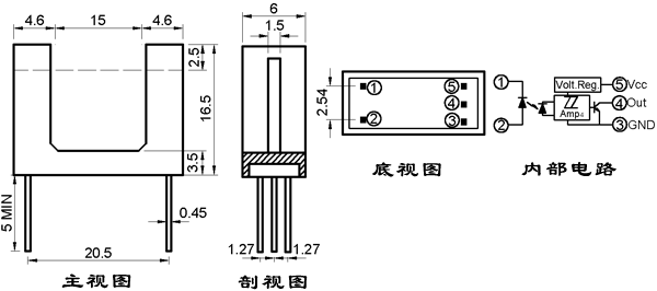 一、特點: ● 單光束施密特三極管集電極開路輸出 ● 光縫寬度(分辨率):1.5mm;光軸中心:2.5mm。 ● IT1156H 為通光高電平輸出, IT1156L 為通光低電平輸出。