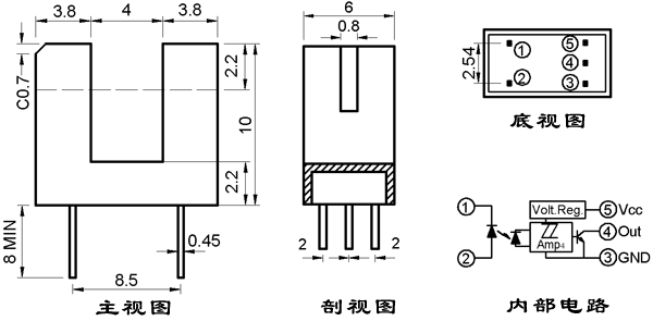 一、特點: ● 單光束施密特三極管集電極開路輸出 ● 光縫寬度(分辨率):0.8mm;光軸中心:2.2mm。 ● IT146H 為通光高電平輸出, IT146L 為通光低電平輸出。