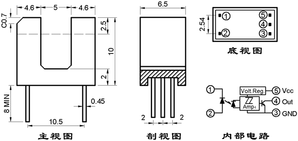 一、特點: ● 單光束施密特三極管集電極開路輸出 ● 防塵結(jié)構(gòu)設(shè)計。 ● 光縫寬度(分辨率):0.5mm;光軸中心:2.5mm。 ● IT150FA-H 為通光高電平輸出, IT150FA-L 為通光低電平輸出。