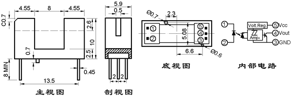 一、特點: ● 單光束施密特三極管集電極開路輸出 ● 光縫寬度(分辨率):0.5mm;光軸中心:2.6mm。 ● IT180AH 為通光高電平輸出, IT180AL 為通光低電平輸出。