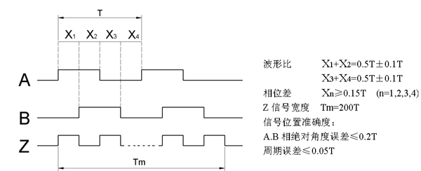 該編碼器由一個(gè)中心有軸的金屬光柵碼盤,2只專用碼盤傳感器讀取,獲得3組信號(hào)組合成。A、B兩相相差90度,可通過比較A相在前還是B相在前,以判別編碼器的正轉(zhuǎn)與反轉(zhuǎn),另每轉(zhuǎn)輸出一個(gè)180度的Z相250線脈沖信號(hào)。