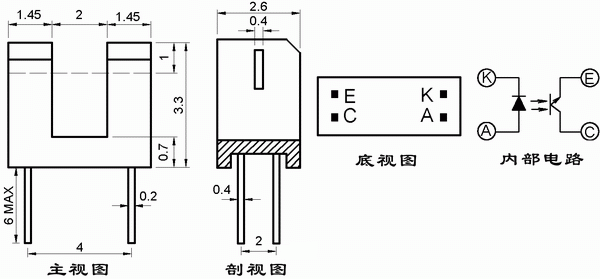 ● 光縫寬度:0.4mm;光軸中心:1mm。