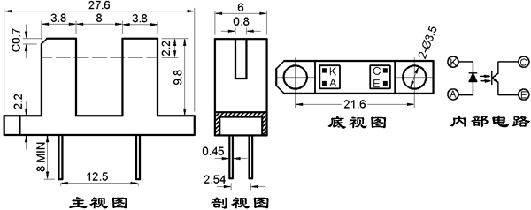 ● 光縫寬度:0.8mm;光軸中心:2.2mm。