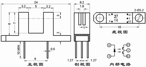 高靈敏度雙光電晶體管組成。